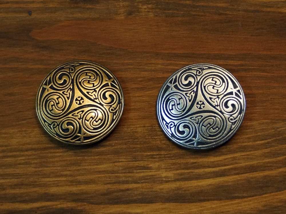 Dieser frühkeltische Beschlag aus massivem Zinkguss ist eine schöne Zierde für jeden Gebrauchsgegenstand aus Leder, wie z.B. Taschen oder Gürtel.